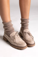 Loafers Suede με Σόλα Lug - Suede σε Χρώμα Taupe