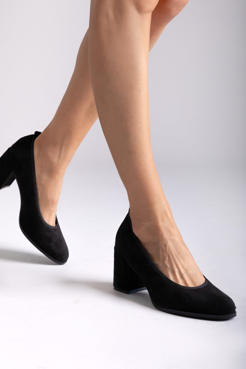 Σουέτ γόβες με χοντρό τακούνι - Μαύρο Σουέτ