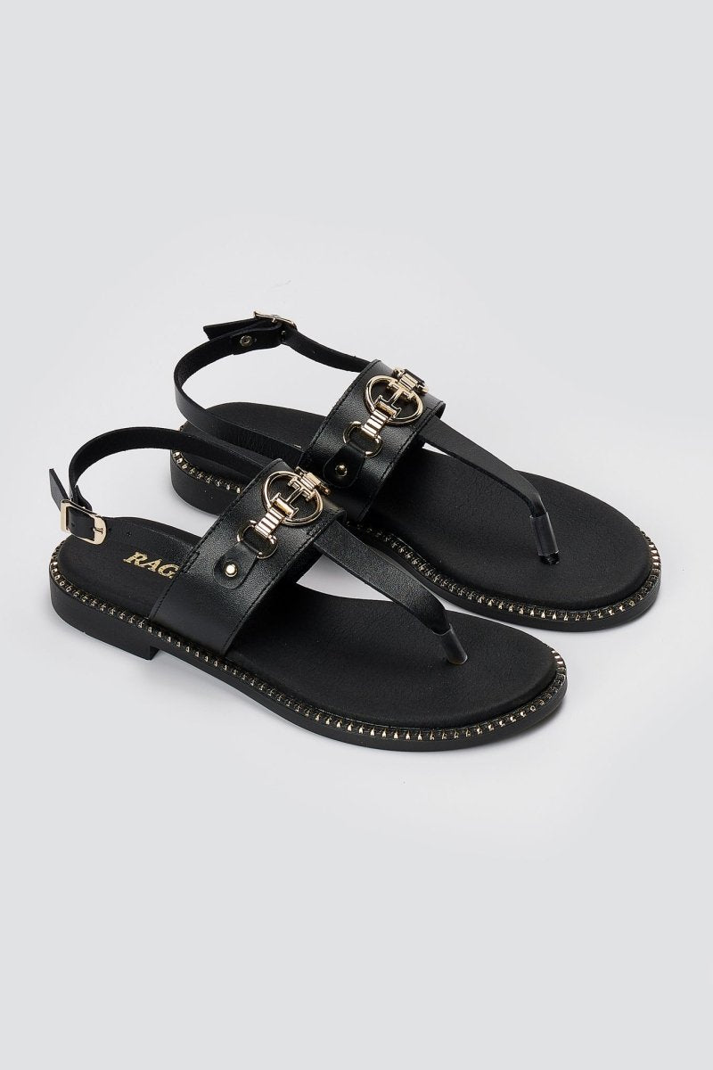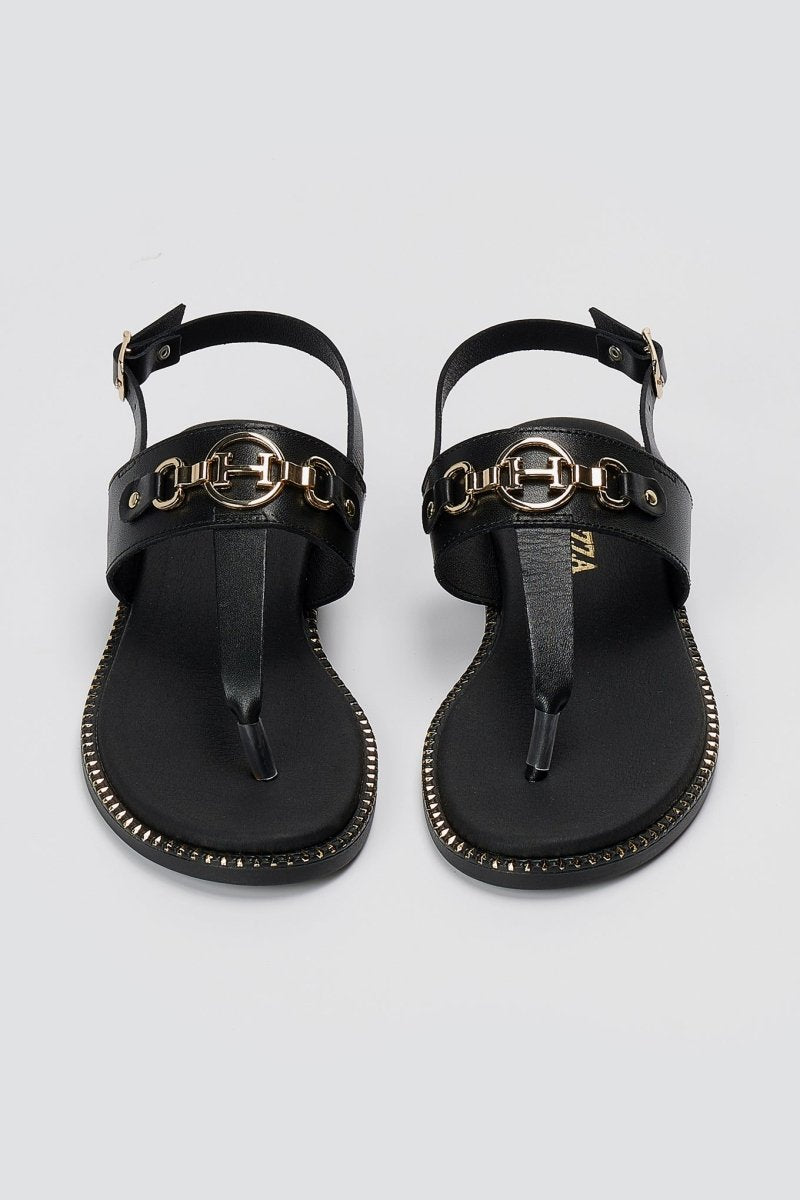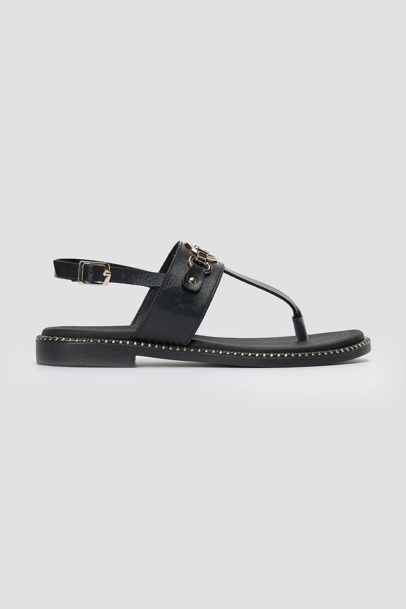 Δερμάτινα σανδάλια με λουράκι σε σχήμα Τ - Μαύρο Ματ