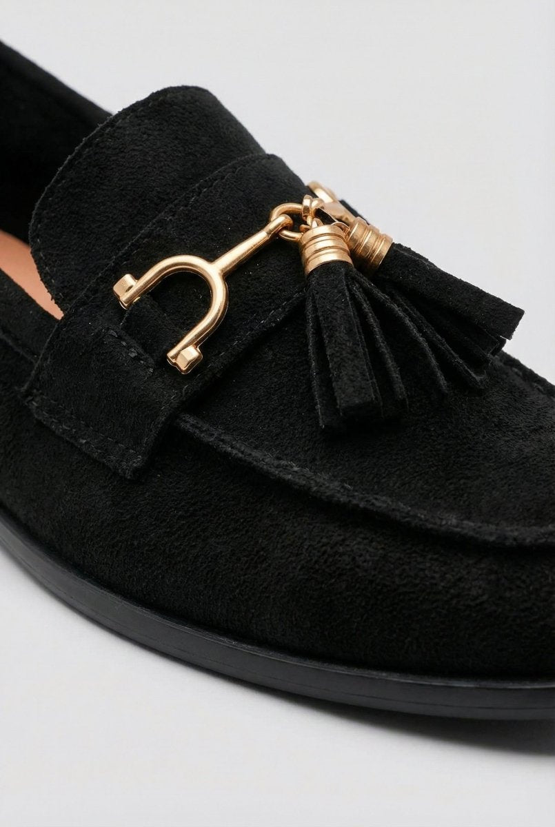 Μοκασίνια με μεταλλική λεπτομέρεια - Μαύρο Σουέντ