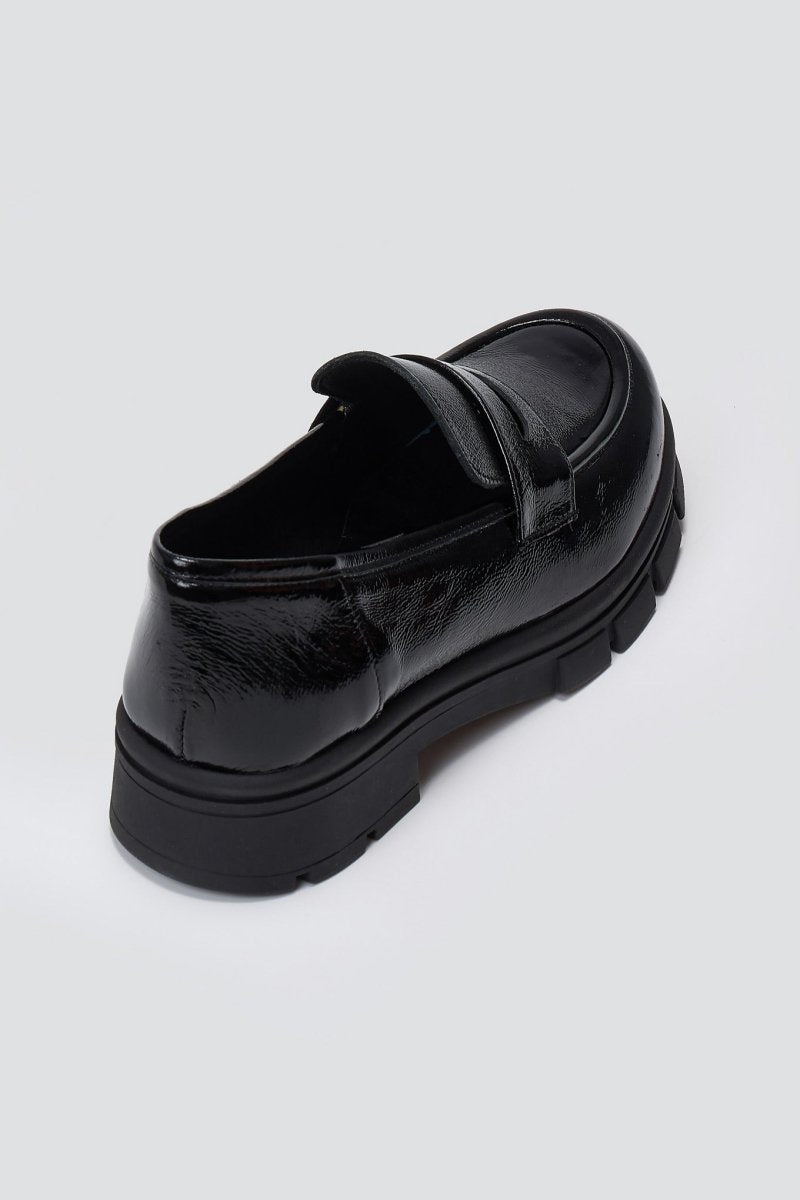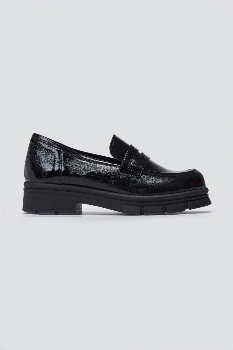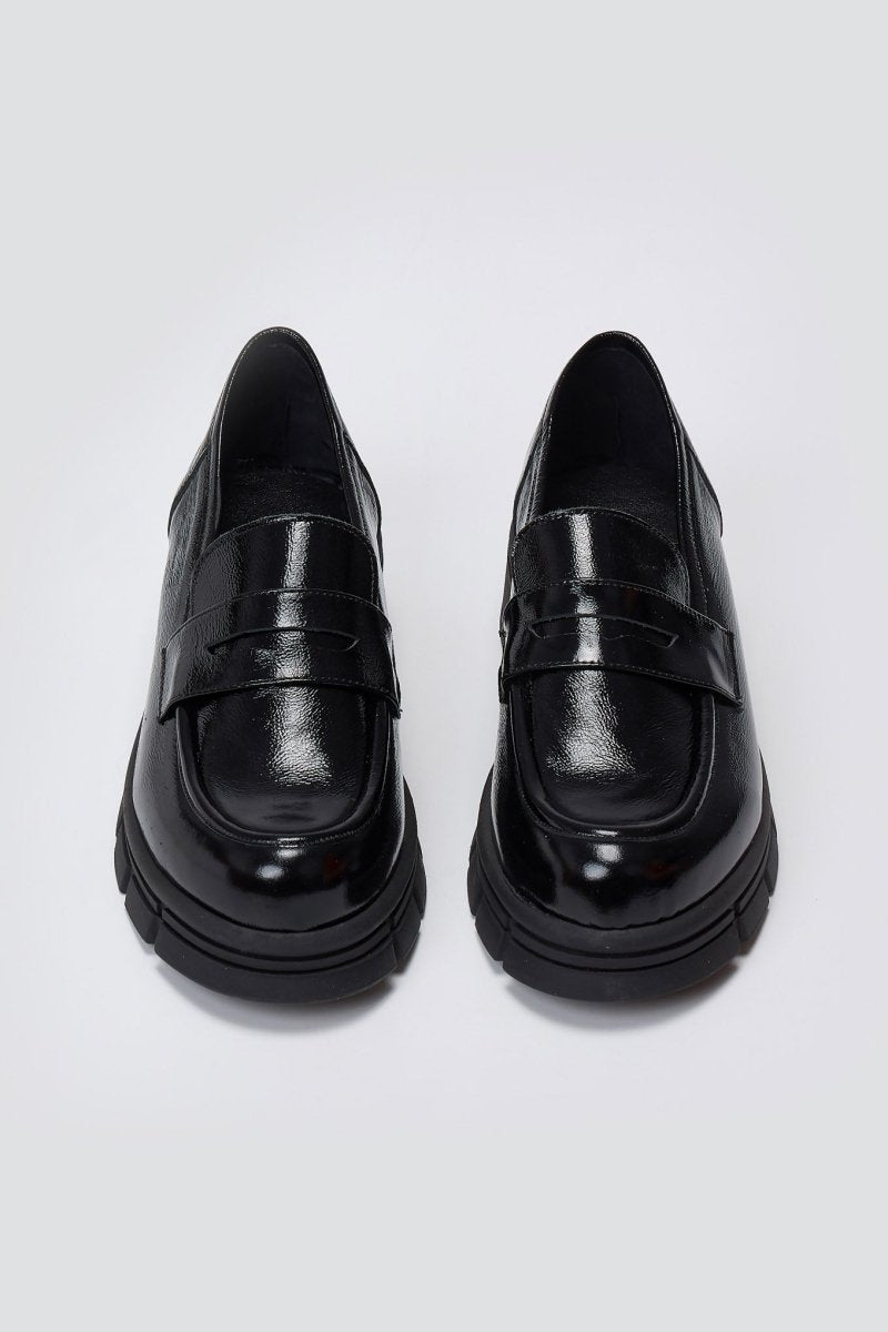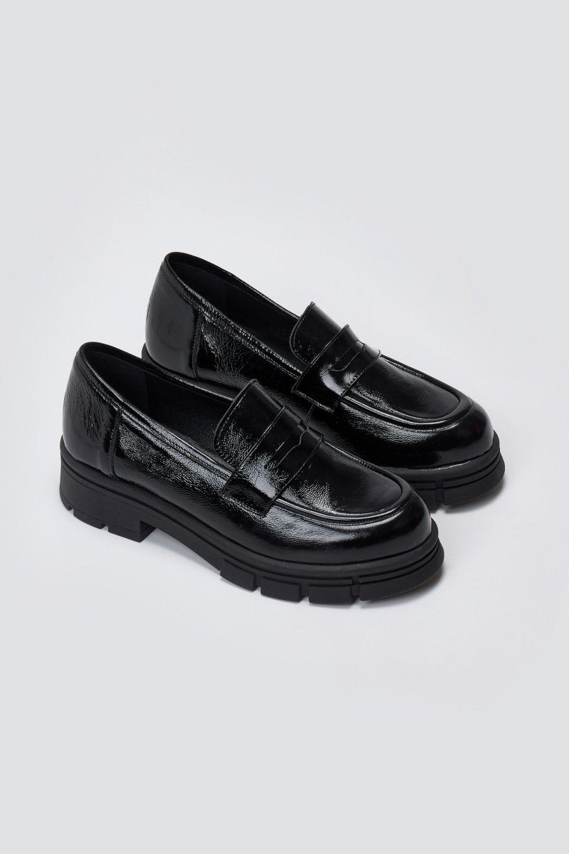 Chunky Loafers με Tρακτερωτή Σόλα - Mαύρο Λουστρίνι