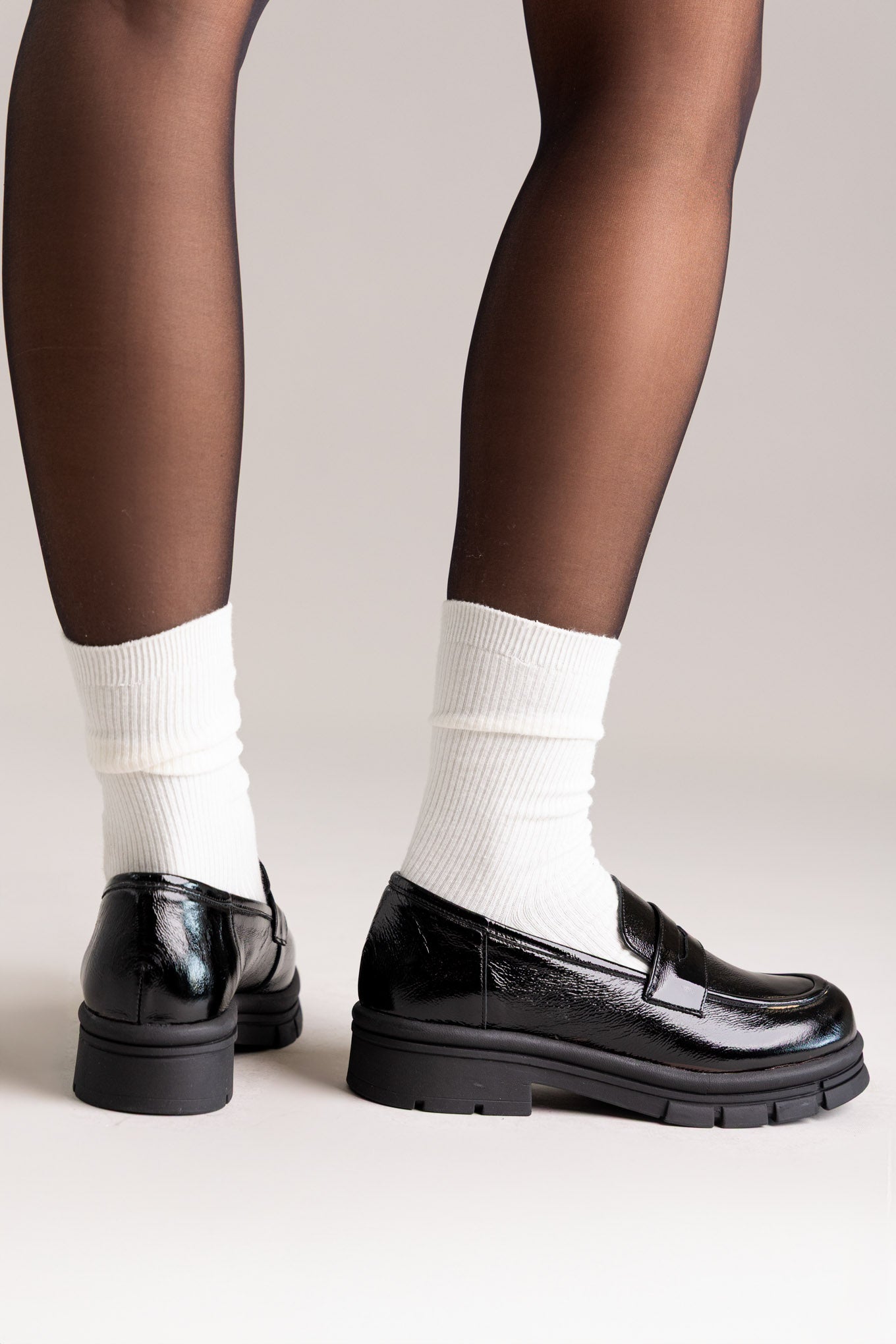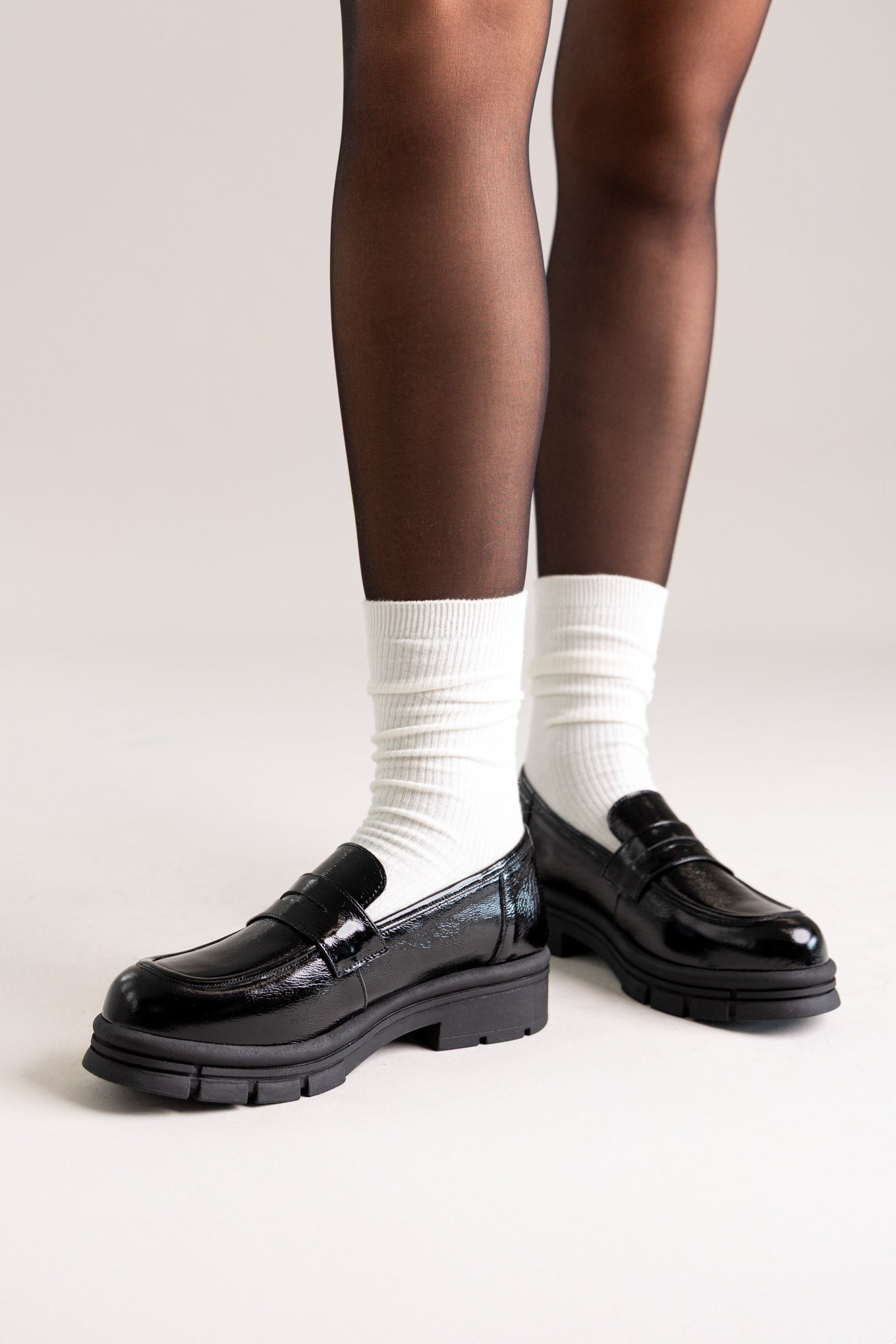 Chunky Loafers με Tρακτερωτή Σόλα - Mαύρο Λουστρίνι