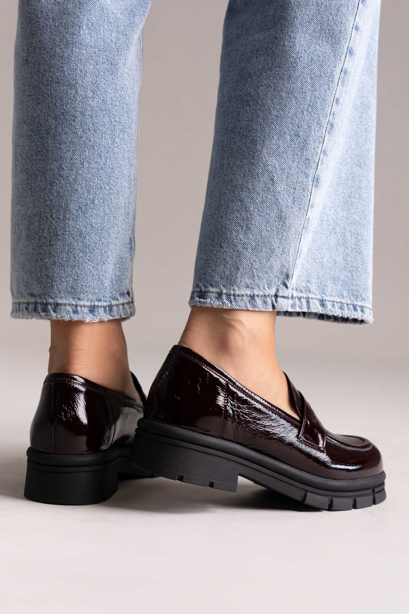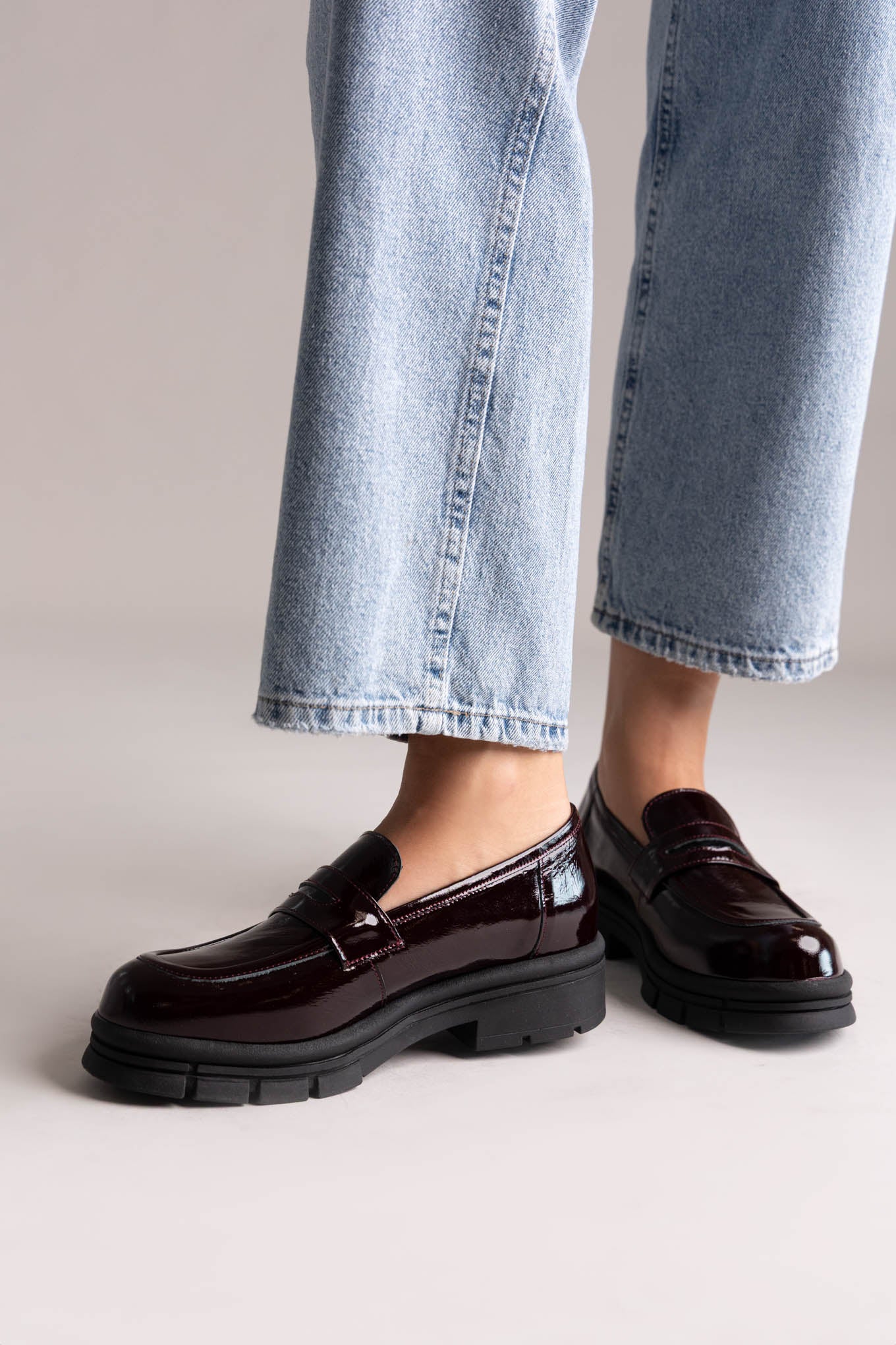 Chunky Loafers με Τρακτερωτή Σόλα - Μπορντό Λουστρίνι