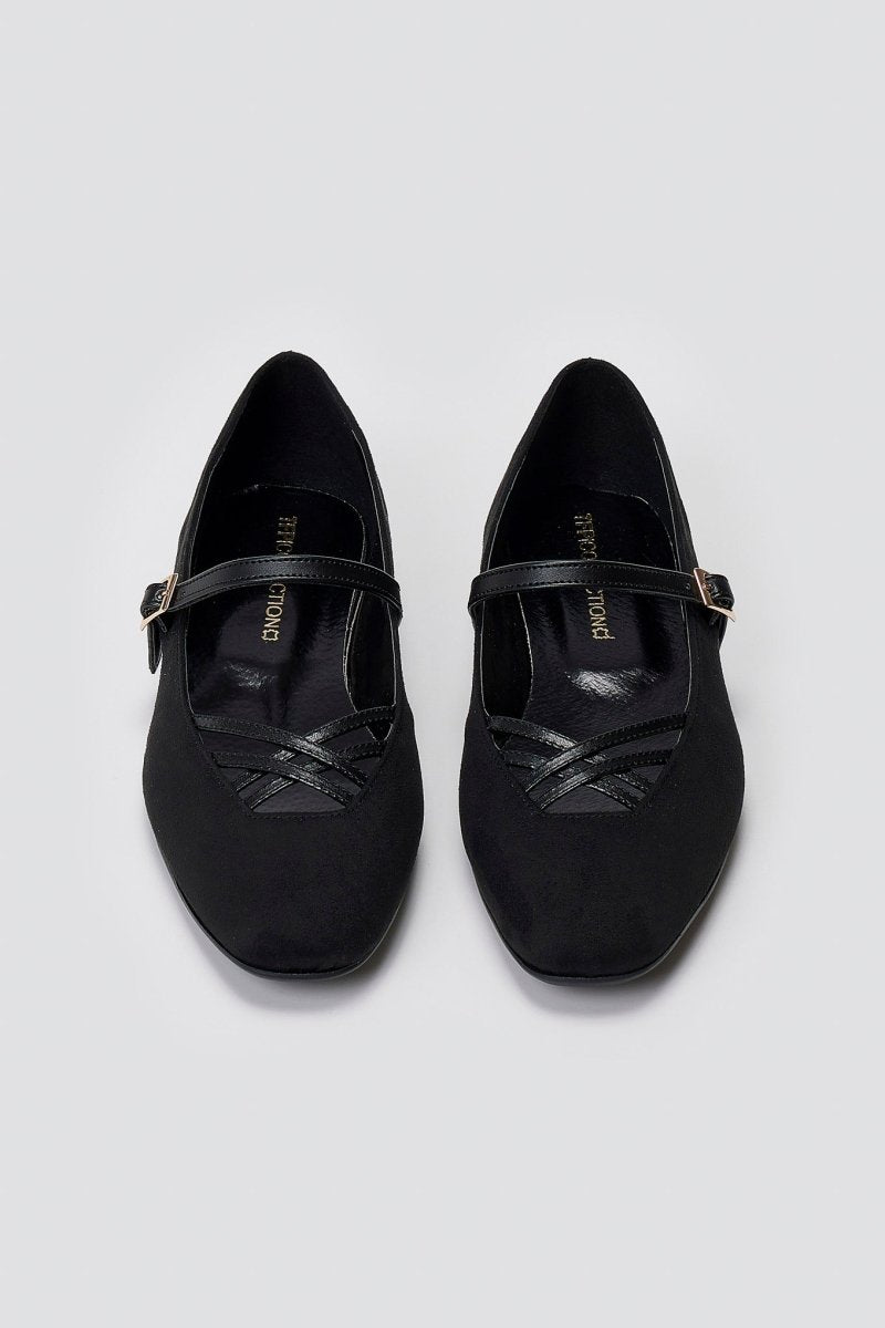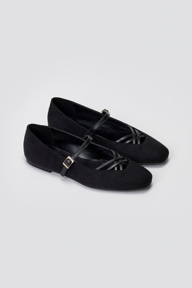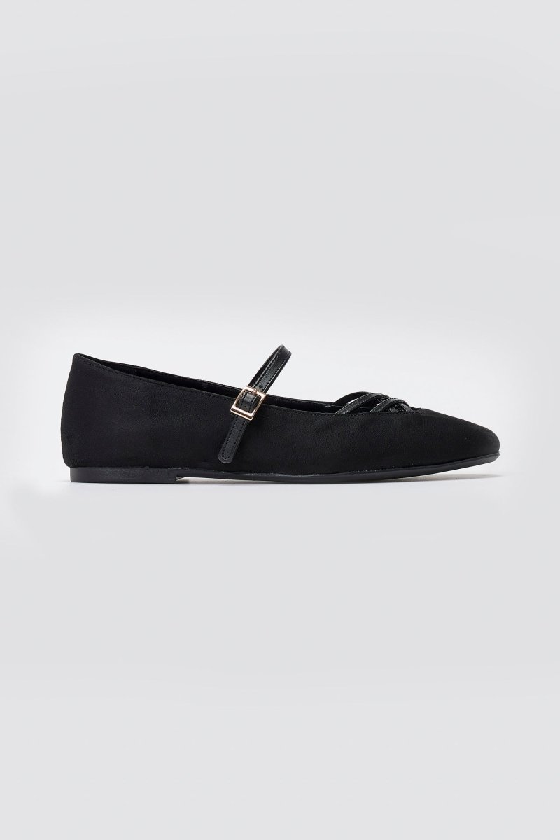 Κομψές σουέτ μπαλαρίνες TFP με λουράκι Mary Jane και διακριτικά λουράκια στα δάχτυλα. Ελαφριές, με μαλακή αντικραδασμική σόλα—ιδανικές για κάθε εμφάνιση από το πρωί ως το βράδυ.
