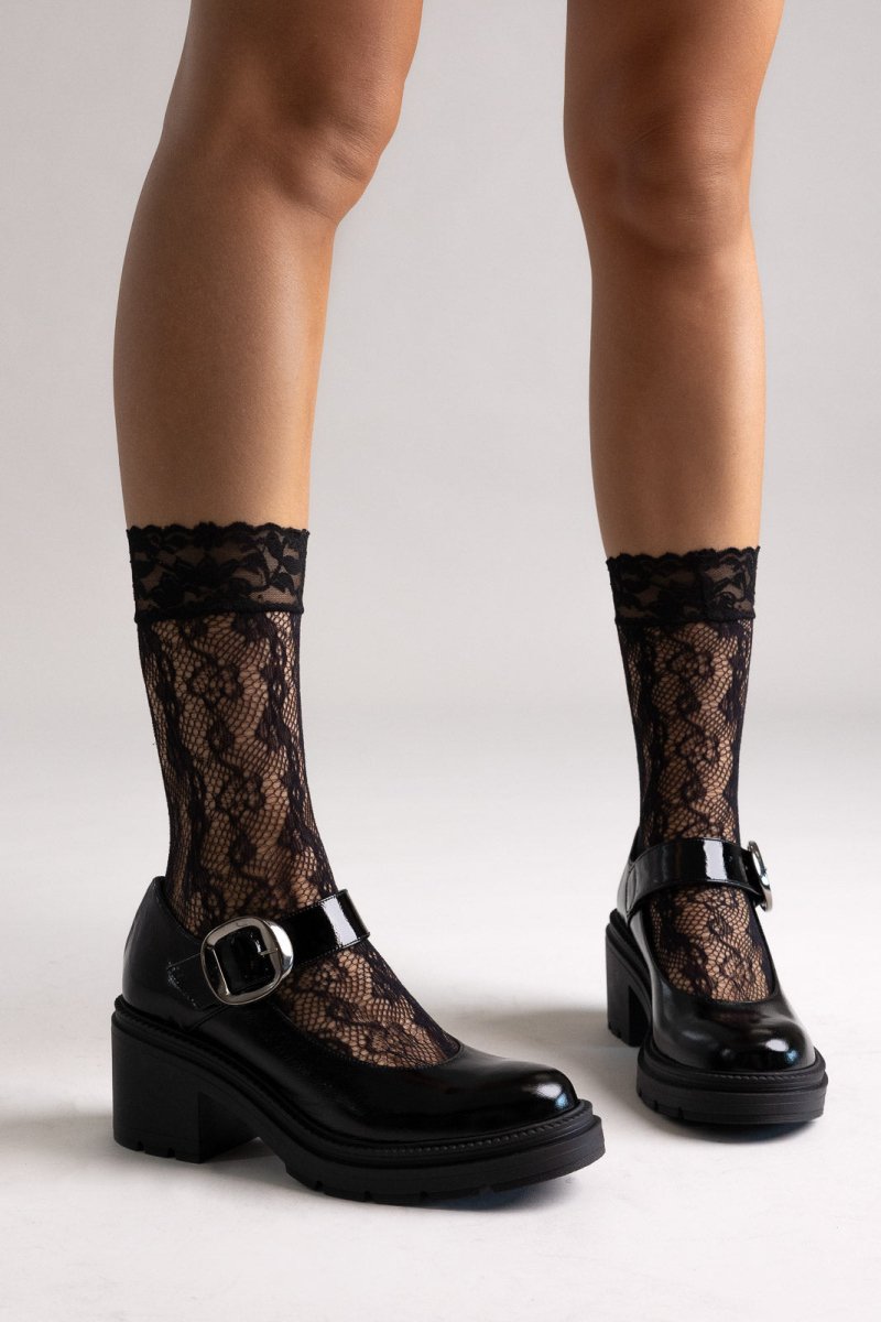 Mary Jane Γόβες με Χοντρό Τακούνι TFP- Μαύρο Λουστρίνι