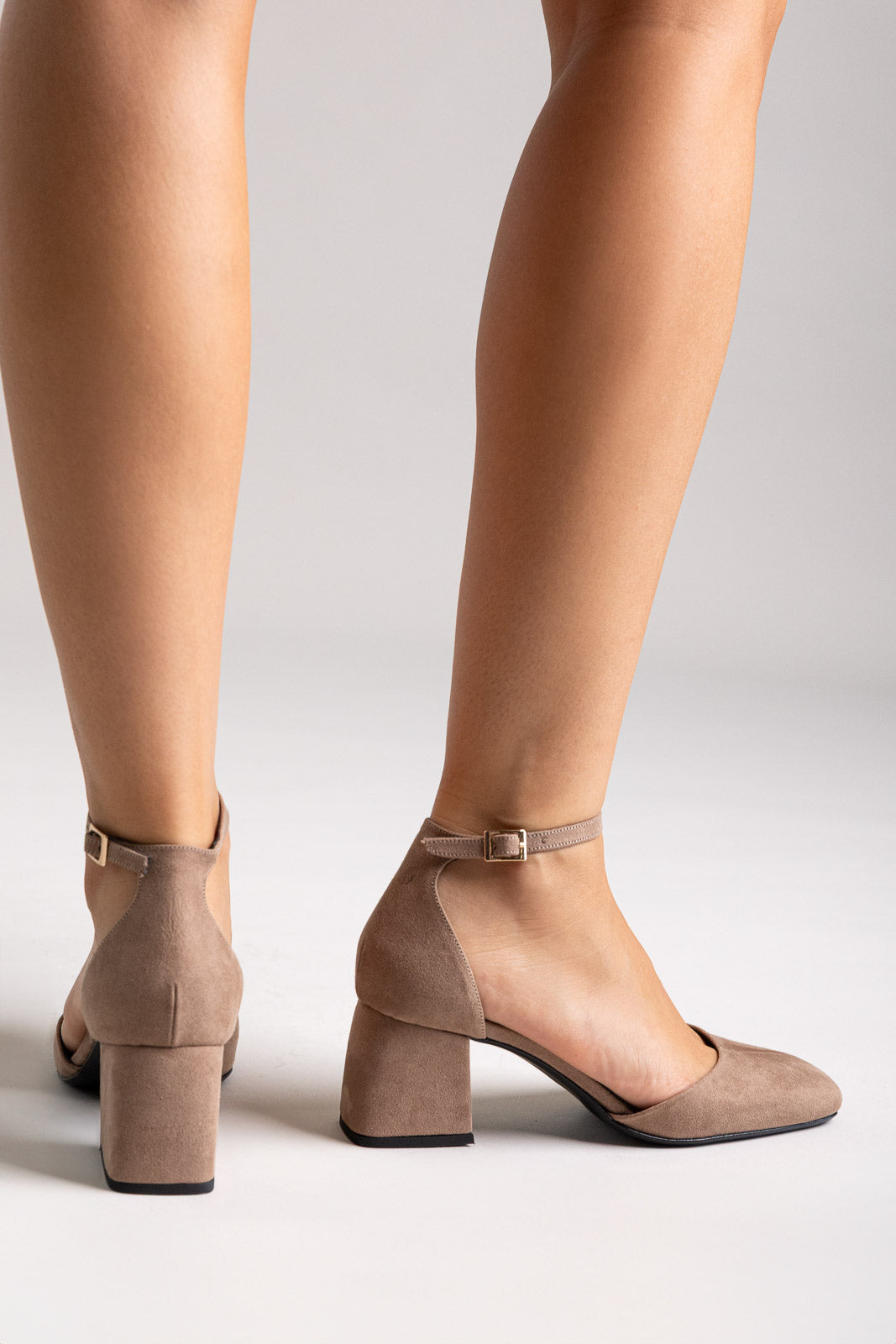 Κομψές γυναικείες γόβες με ανοιχτά πλαϊνά, χαμηλό τετράγωνο τακούνι, λουράκι στον αστράγαλο και τετράγωνη μύτη. Premium μαλακή σόλα και ευέλικτο στυλ σχεδιασμένο για τη σύγχρονη γυναίκα.