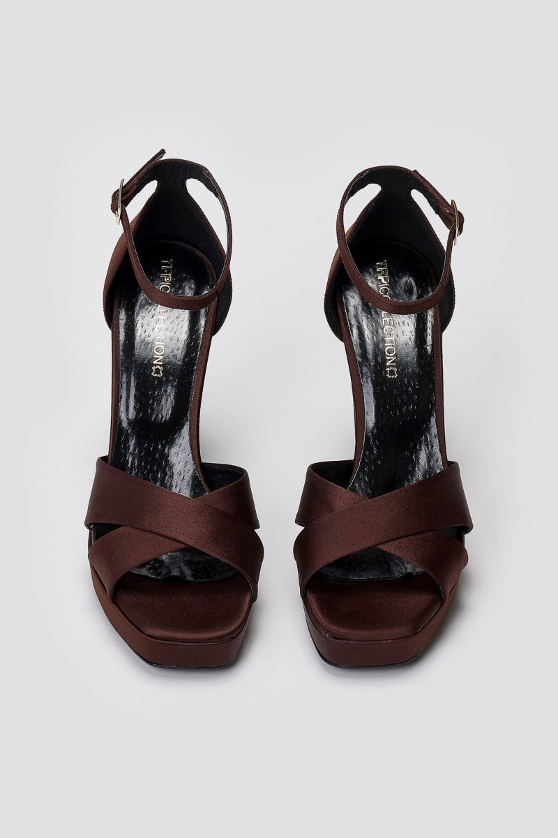 Σατέν πέδιλα πλατφόρμας από την TFP με χιαστί λουράκια, κλειστή φτέρνα και σταθερό λουράκι στον αστράγαλο. Υψηλή άνεση και κομψό ύψος—ιδανικά για βραδινές εμφανίσεις.