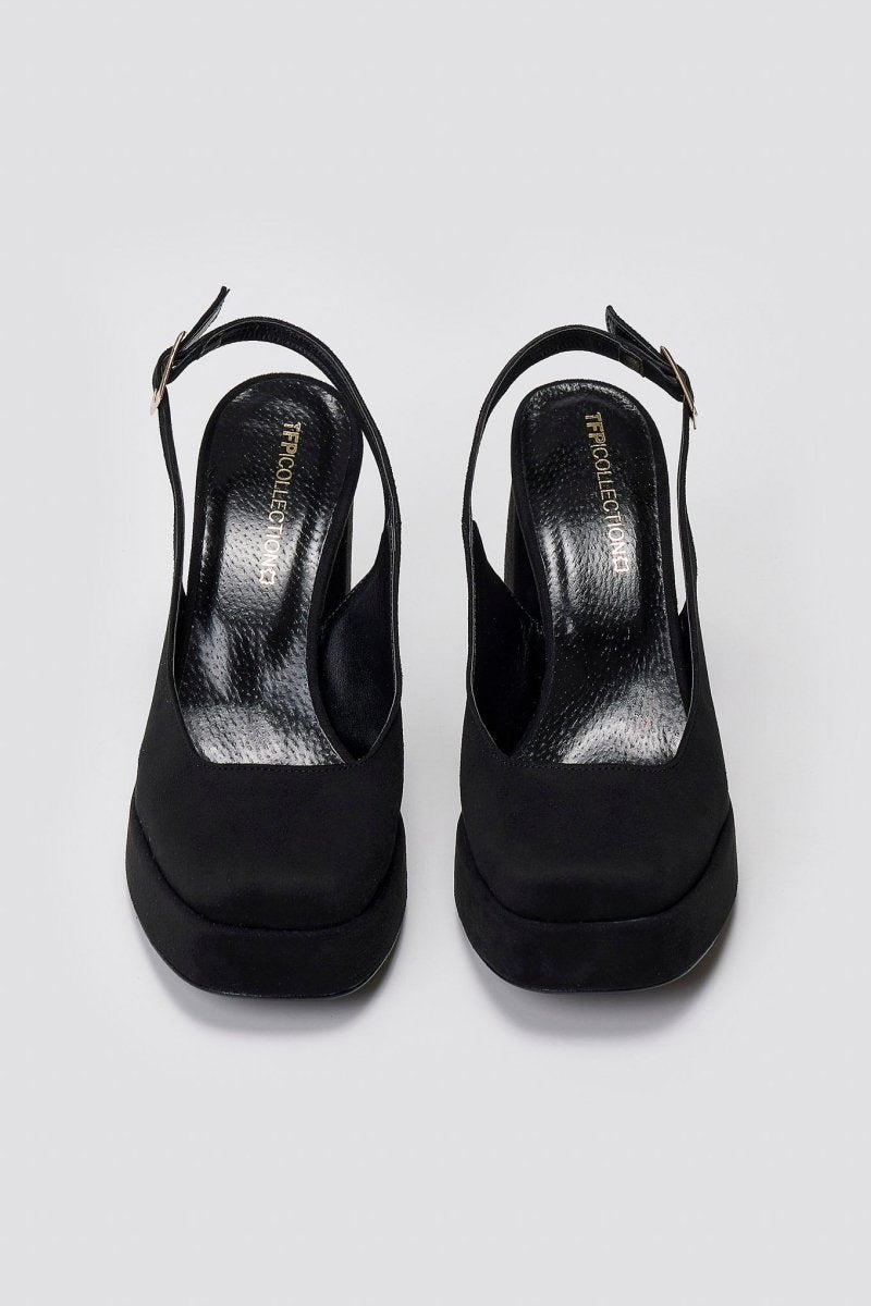 Σουέντ γόβες slingback με φιάπα και ψηλό τακούνι, καθώς και πλαϊνό λουράκι. Κομψή σιλουέτα και μαλακή αντικραδασμική σόλα—σχεδιασμένες για μοντέρνο βραδινό στυλ.