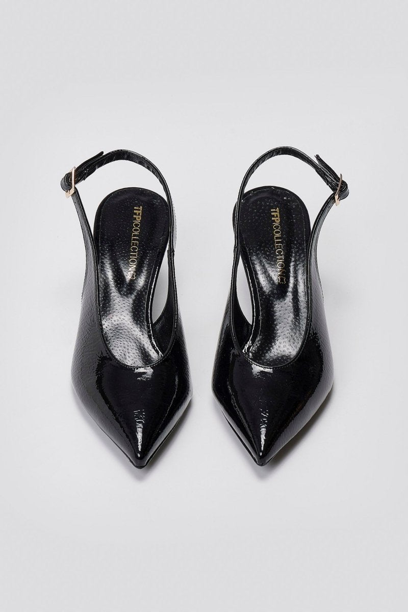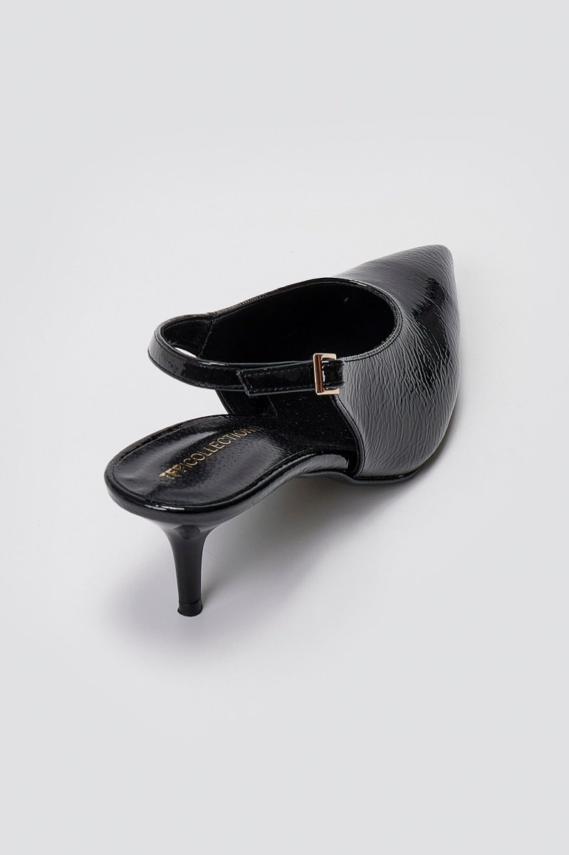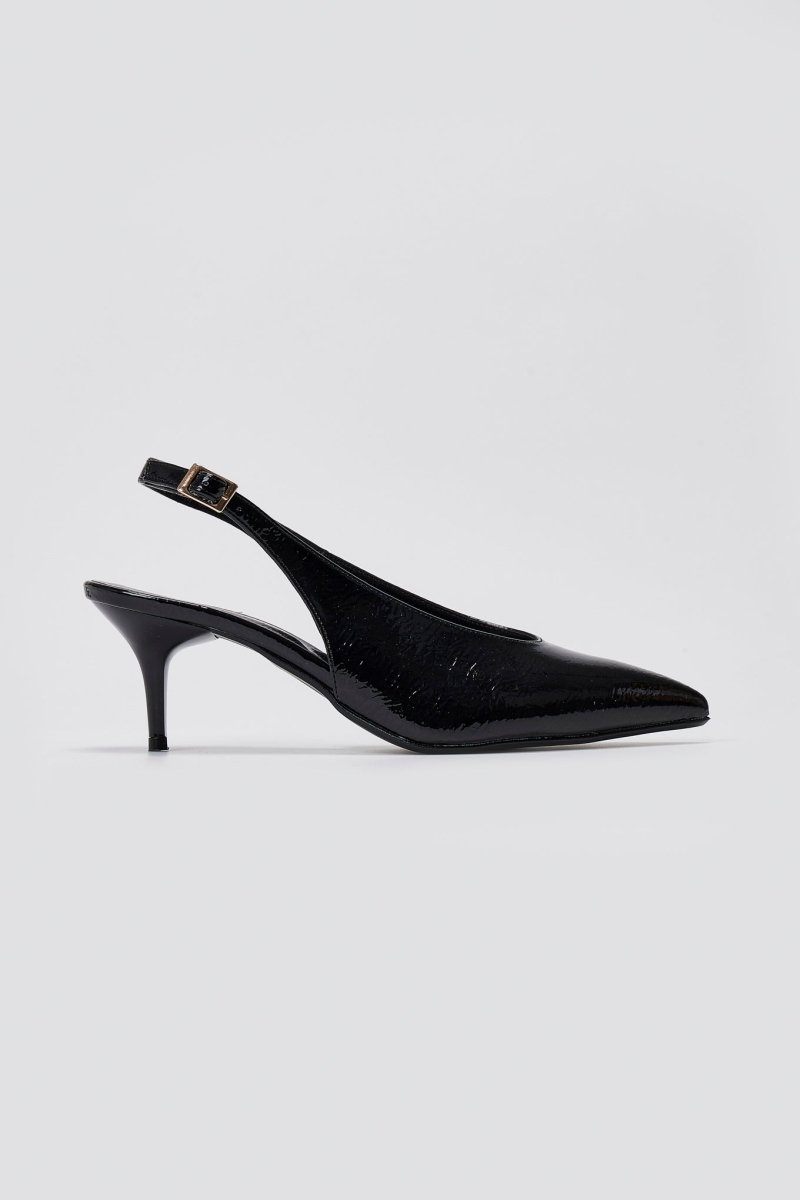 Γόβες slingback με χαμηλό τακούνι - Μαύρο Λουστρίνι