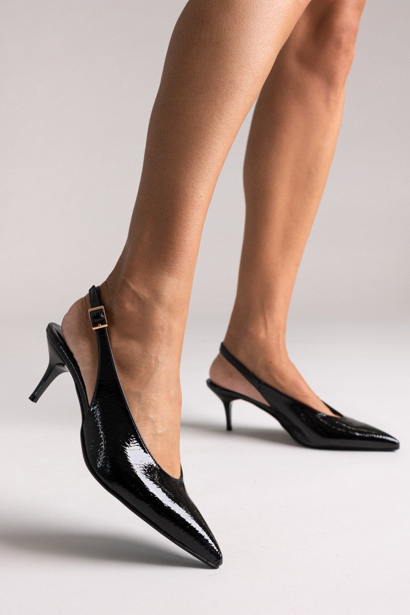Γόβες slingback με χαμηλό τακούνι - Μαύρο Λουστρίνι