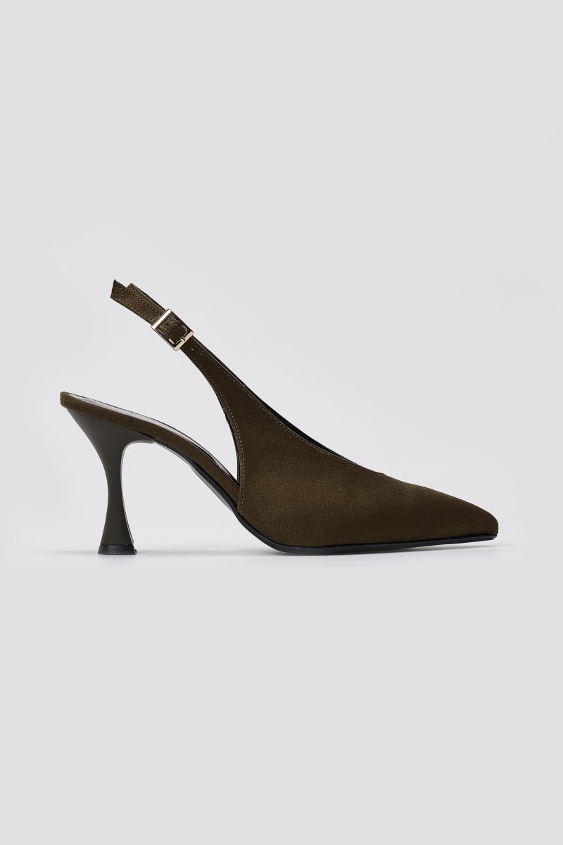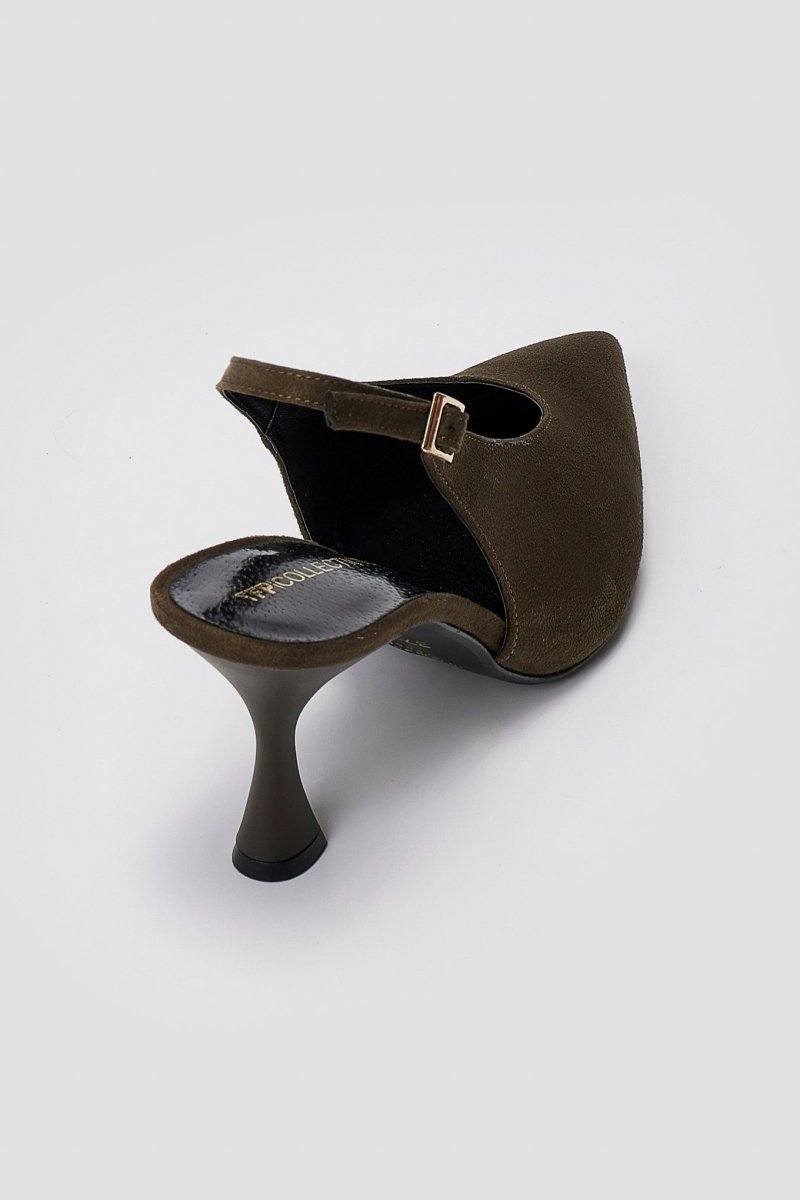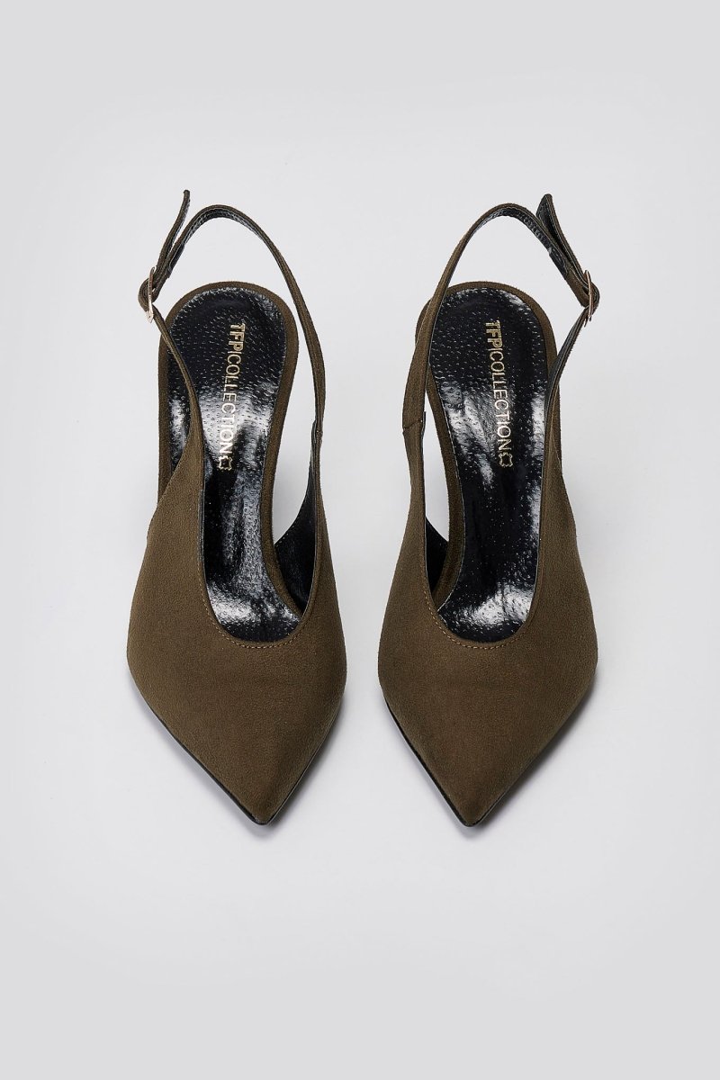 Μυτερές γόβες slingback από σουέτ της TFP με λεπτό τακούνι στιλέτο και πλαϊνό λουράκι με αγκράφα. Κομψή εμφάνιση και μαλακή άνεση, σχεδιασμένες για τη σύγχρονη γυναίκα.