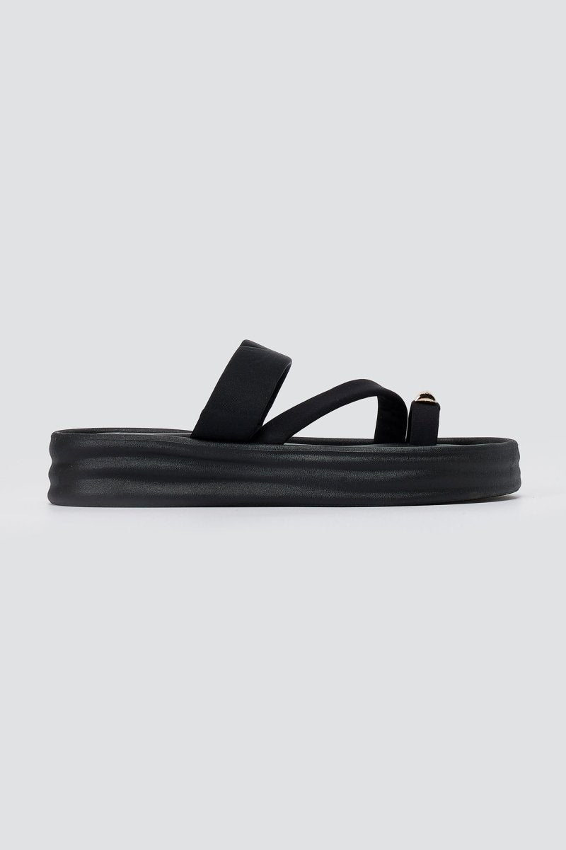 Σανδάλια Flatform με διακοσμητικό - Μαύρο σατέν