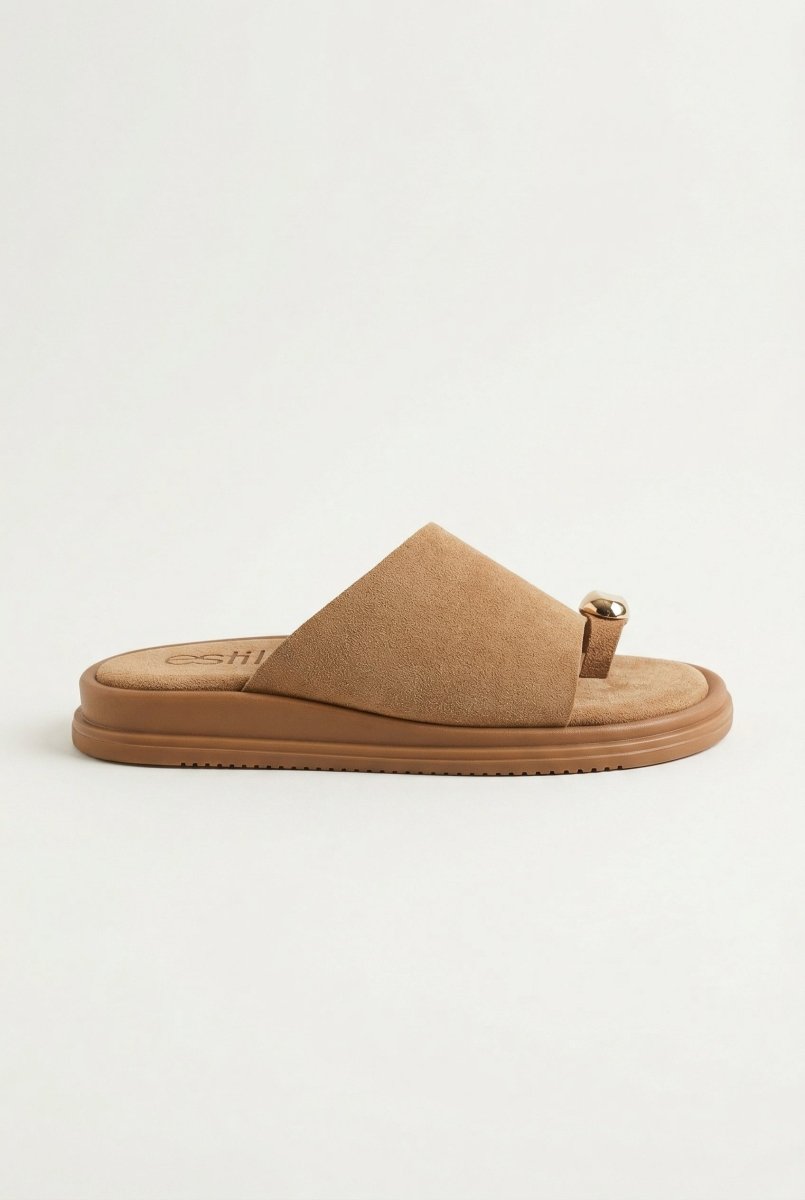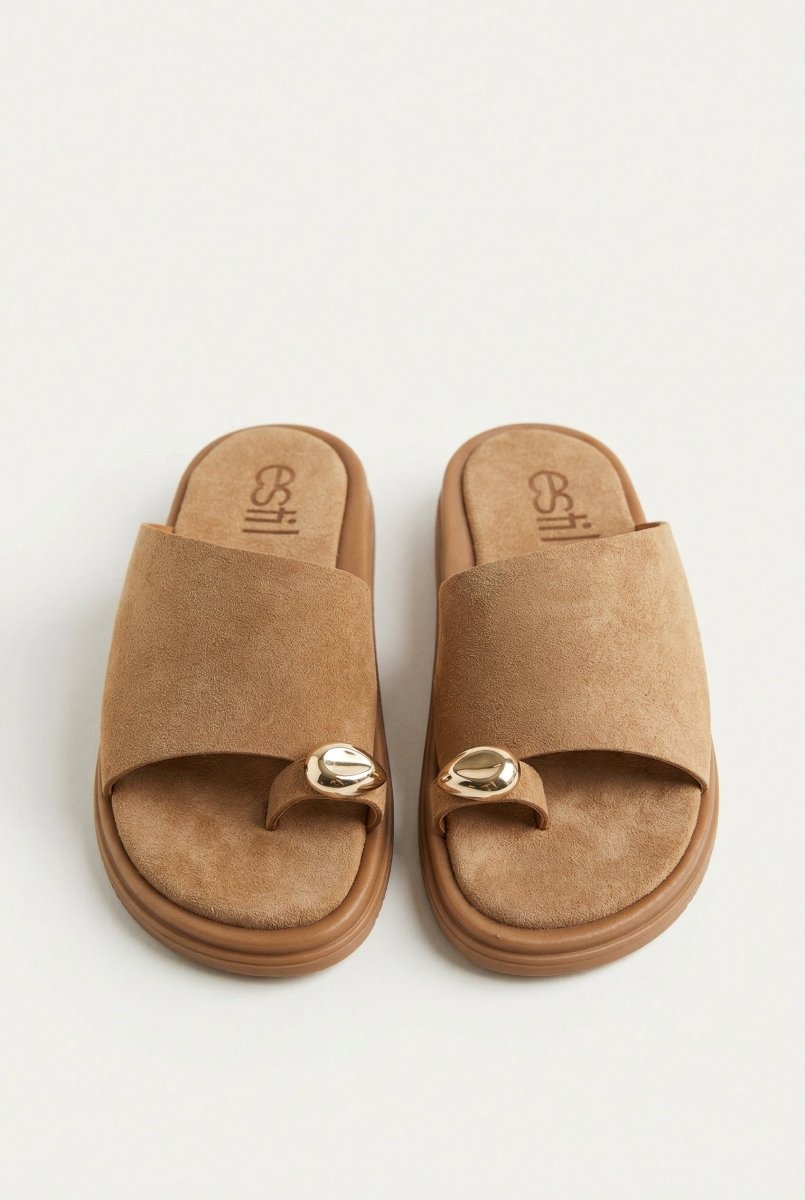 Flatform σανδάλια με δαχτυλίδι δακτύλου - Μπεζ Σουέντ