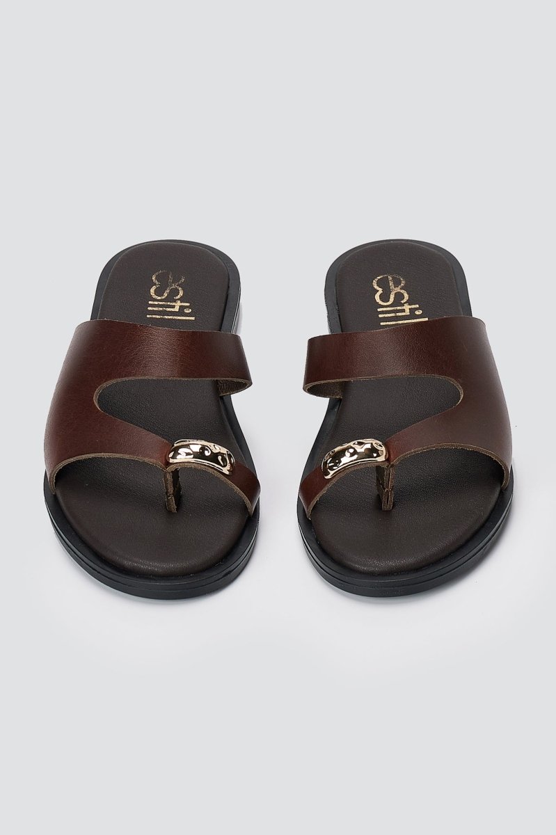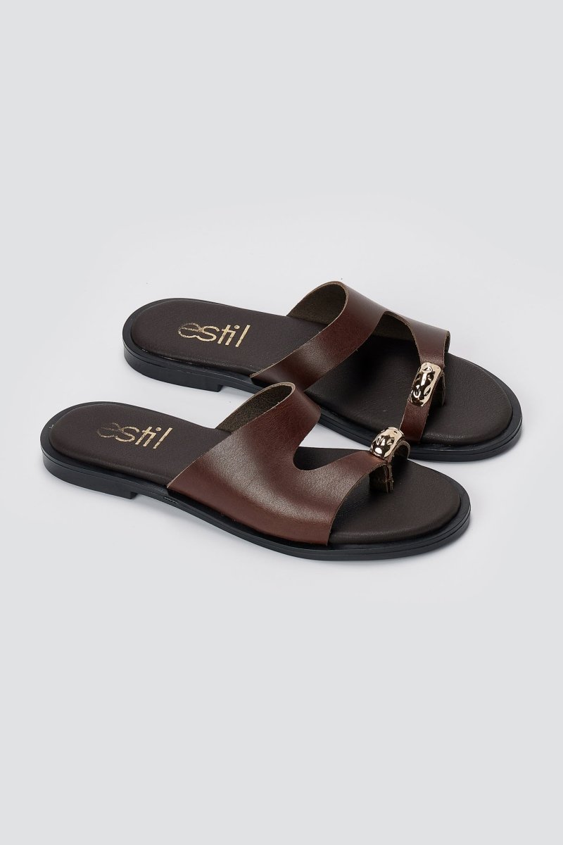 Σανδάλια με με μεταλλική λεπτομέρεια - Σκούρο Καφέ Ματ