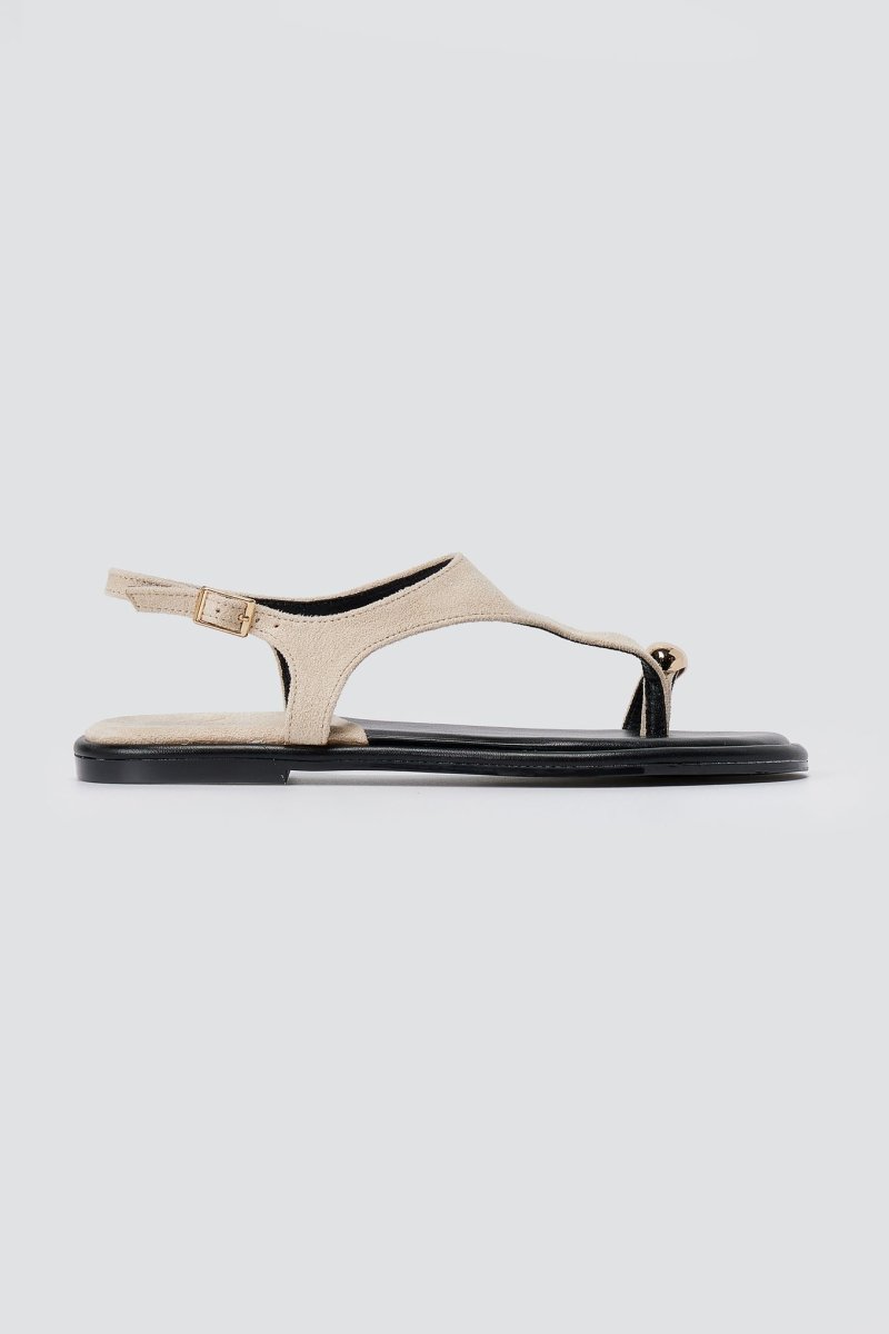 Σανδάλια με μεταλλική λεπτομέρεια - Μπεζ Σουέντ