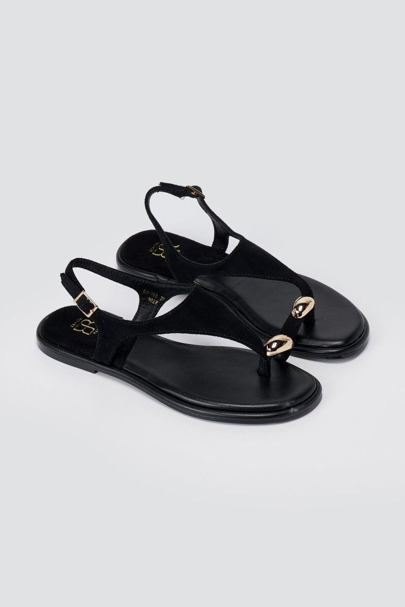 Σανδάλια με μεταλλική λεπτομέρεια - Μαύρο Σουέντ