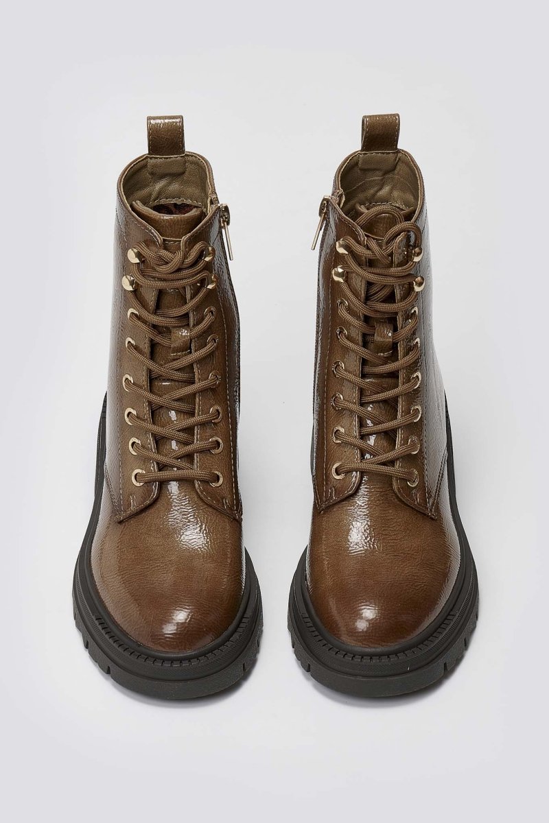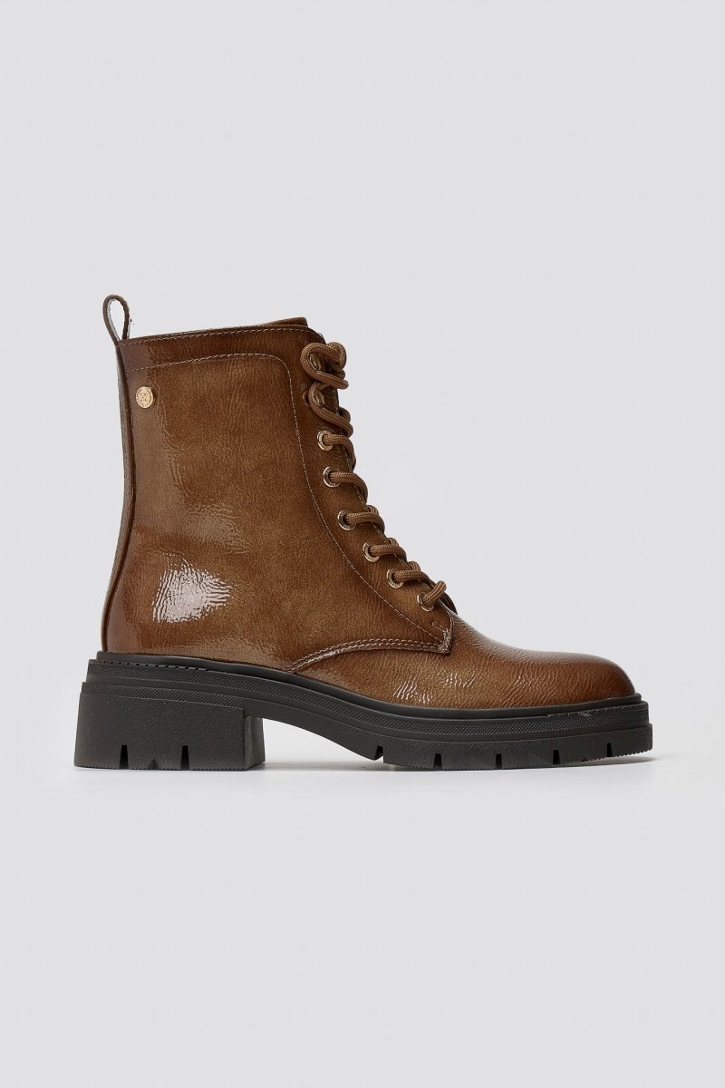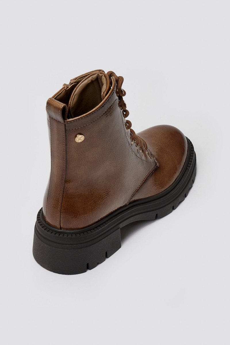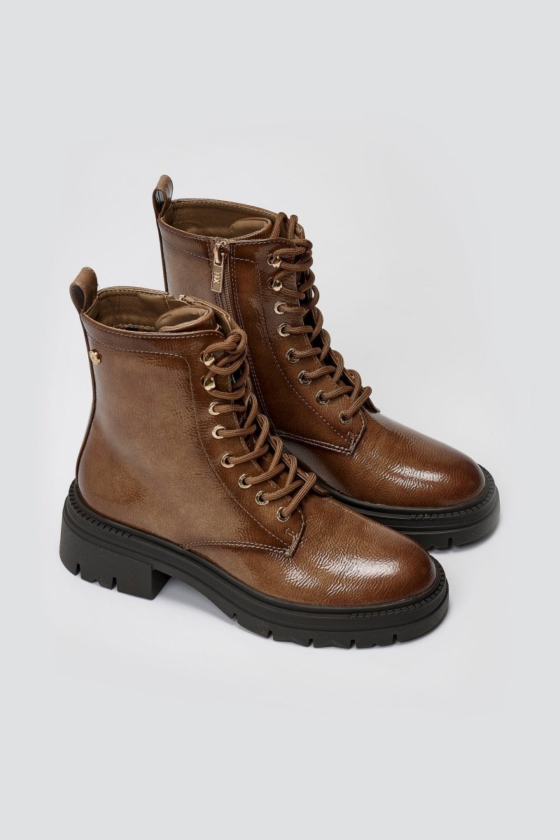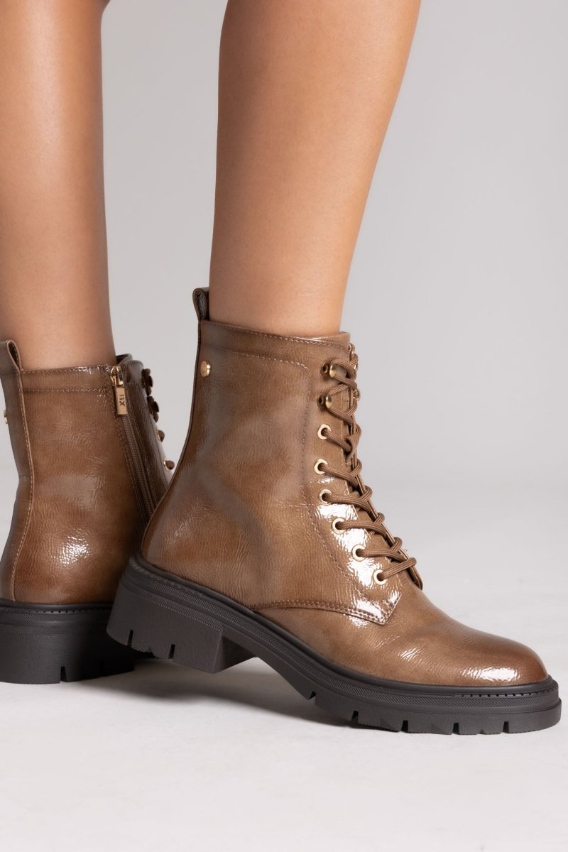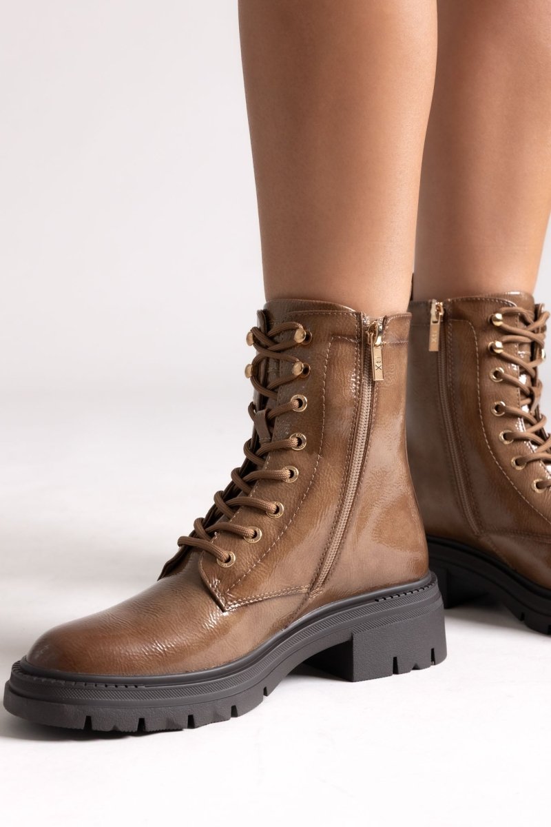 Xti 144296 Λουστρίνι Μποτάκια Combat με Κορδόνια - Ανοιχτό Καφέ Λουστρίνι